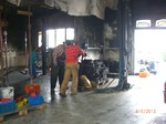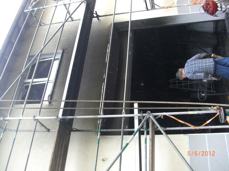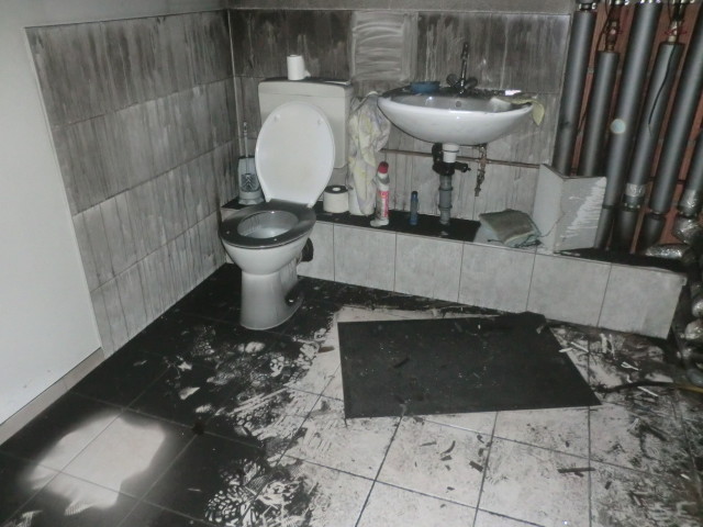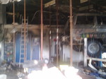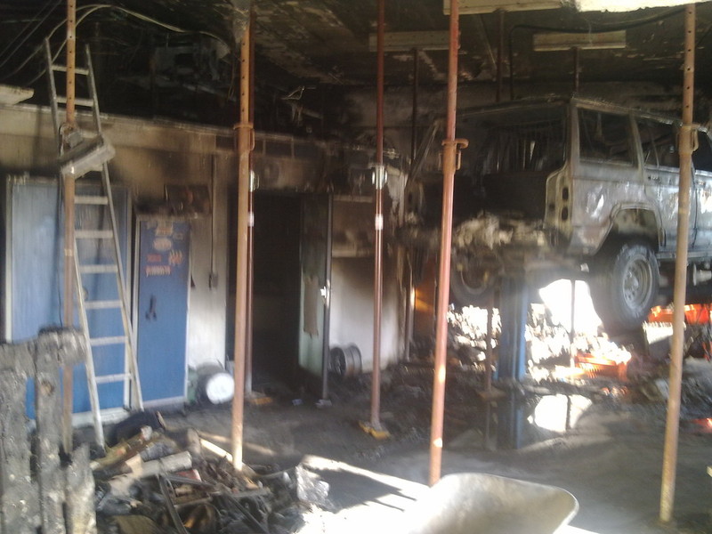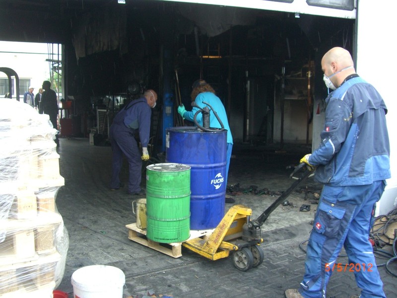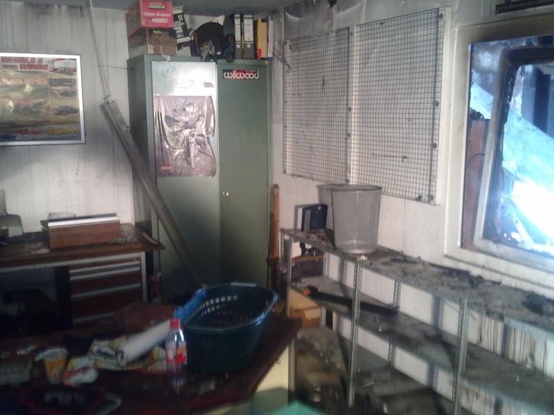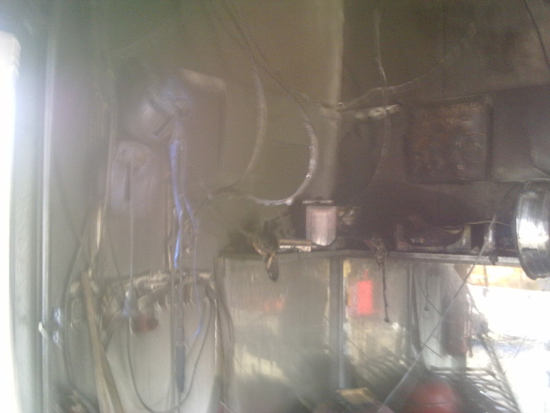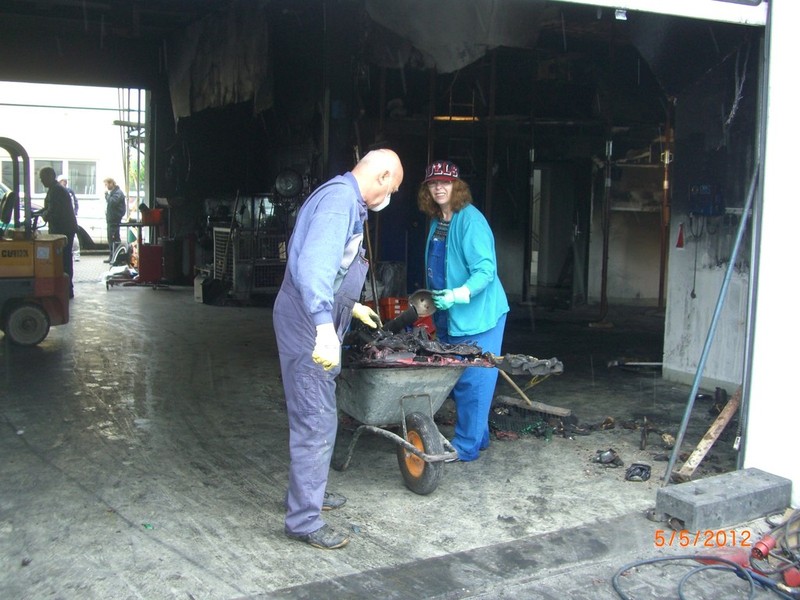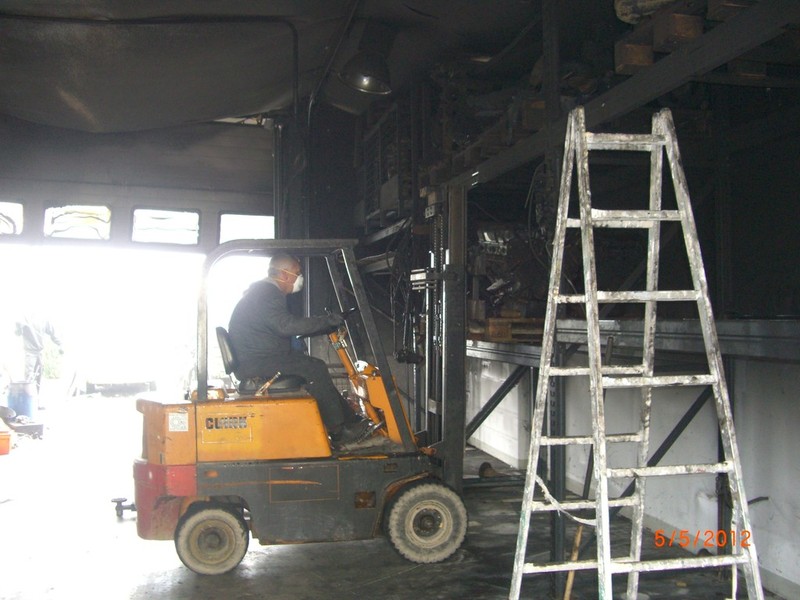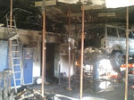 Auf dieser Bühne stand das Unglücksfahrzeug. Hier entstand die größte Hitze. Da sich die Decke gewölbt hat, muss sie vorerst gestützt werden, bis die Beurteilung des Statikers erfolgt ist.